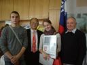 Vendijs Dinārs Vilcāns, Pāvels Sagalajevs, Laima Līdeka ir apbalvoti ar diplomiem (skolotājs Antons Vaivods)
