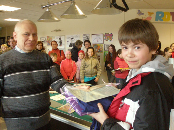 Tukumā, 2010. gada 9. aprīlī. JMS audzēkņi ar panākumiem piedalās karikatūru izstādē "Melnā kaķa piedzīvojumi".