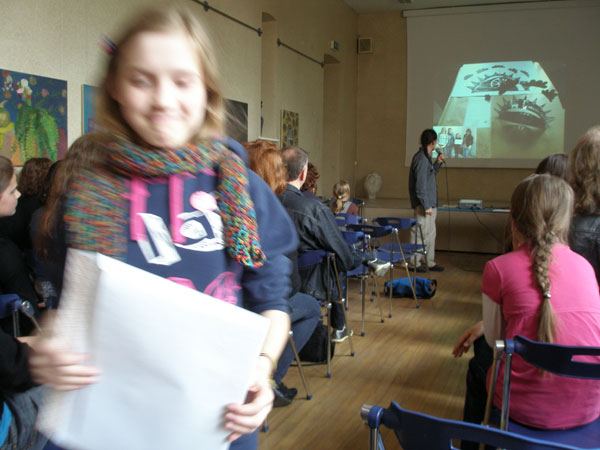 30. aprīlī J.Rozentāla Rīgas mākslas vidusskolā norisinājās Latvijas mākslas skolu audzēkņu un pedagogu forums NEDEKORĒ - KOMUNICĒ! Tajā piedalījās 80 audzēkņi un 140 skolotāji no 60 Latvijas mākslas skolām. Forumā notika dažādi paralēli pasākumi -pedagogu tālākizglītības seminārs ”Laikmetīgās mākslas principi profesionālās ievirzes izglītības programmā Vizuāli plastiskā māksla” ESF projekta ietvaros, skolēnu radošais darbs, skolu ekspozīcijas un prezentācijas, aktivitātes skolēniem. Forumā notika dažādi paralēli pasākumi -pedagogu tālākizglītības seminārs ”Laikmetīgās mākslas principi profesionālās ievirzes izglītības programmā Vizuāli plastiskā māksla” ESF projekta ietvaros, skolēnu radošais darbs, skolu ekspozīcijas un prezentācijas, aktivitātes skolēniem. No Jūrmalas mākslas skolas piedalījās audzēknes Līva Vilnīte, Nikolija Macņeva un Anna Dace Kamaldiņa (pedagogi Māra Mozgire, Valentīna Homka, Dace Ziemele). Par izveidoto telpisko objektu mūsu meitenes saņēma diplomu - atzinību nominācijā "Pilnīga skaidrība".