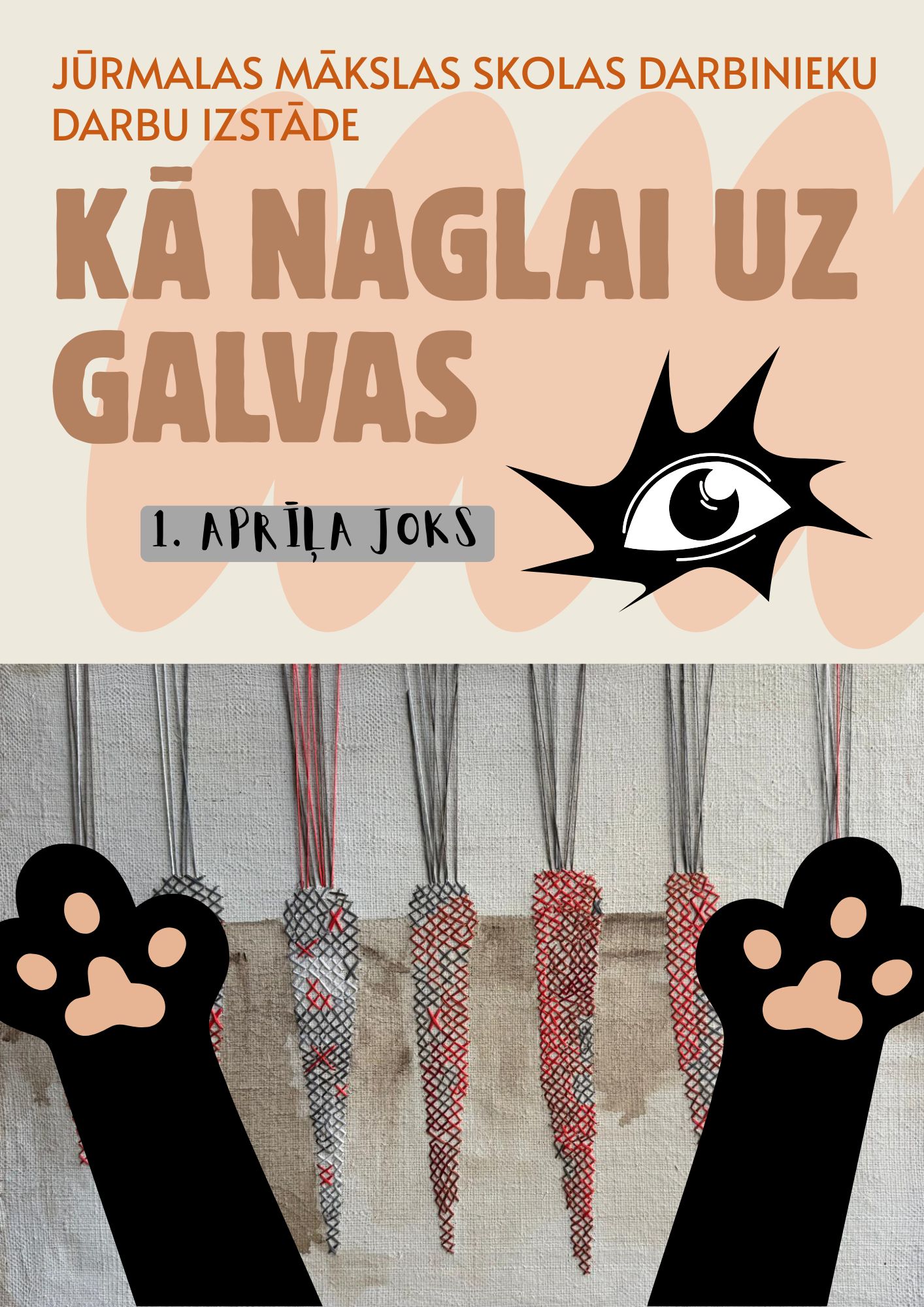Jūrmalas Mākslas skola regulāri rīko skolas pedagogu darbu izstādes, nu pievienojušies visi skolā strādājošie, radot radošas versijas dažādiem izteicieniem izstādē "Kā naglai uz galvas". Dzīvot var "zaļi" un "cepuri kuldams", bet "aste var būt gredzenā vai bluķī", un "dūša papēžos", bet "galva mākoņos".