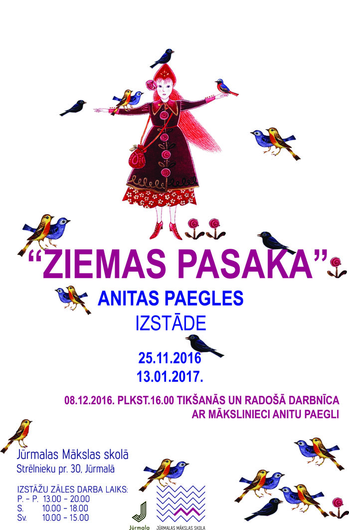 25.11.2016. - 13.01.2017. JMS izstāžu zālē skatāma mākslinieces Anitas Paegles grāmatu ilustrāciju izstāde.