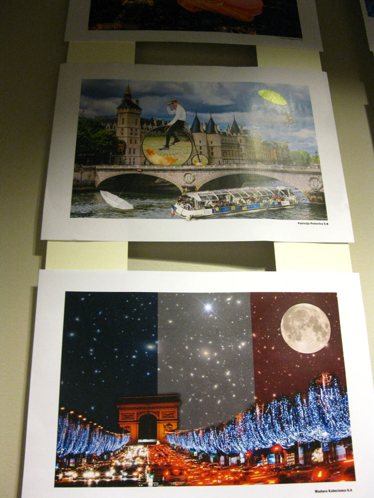 Konkursa izstādē “Francijas pērles” ir apskatāmi 173 darbi, kuri ataino mazo mākslinieku skatījumu uz Francijas nozīmīgākām kultūrvēsturiskajām vērtībām. Viens no Franciju visvairāk raksturojošiem objektiem izrādās ir Eifeļa tornis , kuram izstādē ir atvelēta goda vieta. Skolas audzēkņi ir studējuši un attēlojuši darbos gan Francijas pilis, kalnu ainavas, gan labi zināmo franču modernistu K. Monē un A.Matisa darbus, gan arī Luvras muzejā apskatāmos dārgumus. Daļa audzēkņu studēja Jūrmalas sadraudzības pilsētas Kabūras kultūru un dabu, kā arī bija mēģinājuši izprast Francijas gaisotni. Savukārt mūsu skolas paši mazākie audzēkņi priekšroku bija devuši Sunīša Pifa piedzīvoju attēlošanai. Izstādē ir apskatāmi darbi, kas tapuši dažādās mākslas tehnikās. Izstādē ir apskatāmas franču vitrāžu studijas stiklā, keramikas šķīvis ar fraču gastronomijas pērlēm, apgleznotās flīzītēs iemūžināts Francijas šarms , datorgarfikā fiksētas Francijas kultūras daudzveidība filigrānās zīmētās un gleznotās pilis, austs Eifeļa tornis