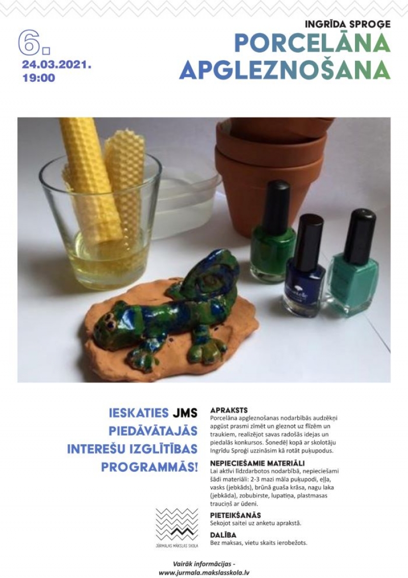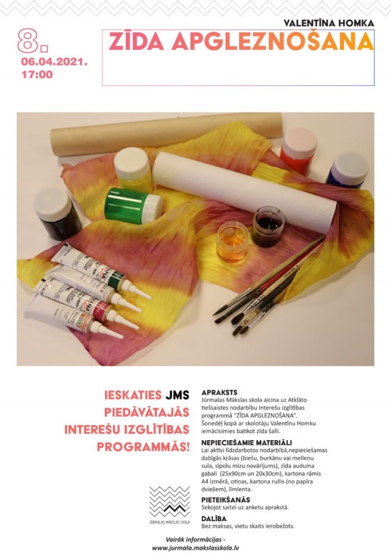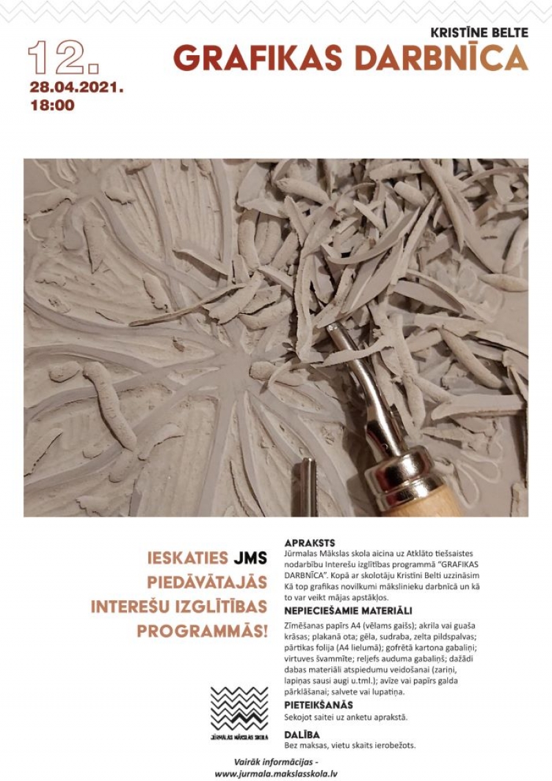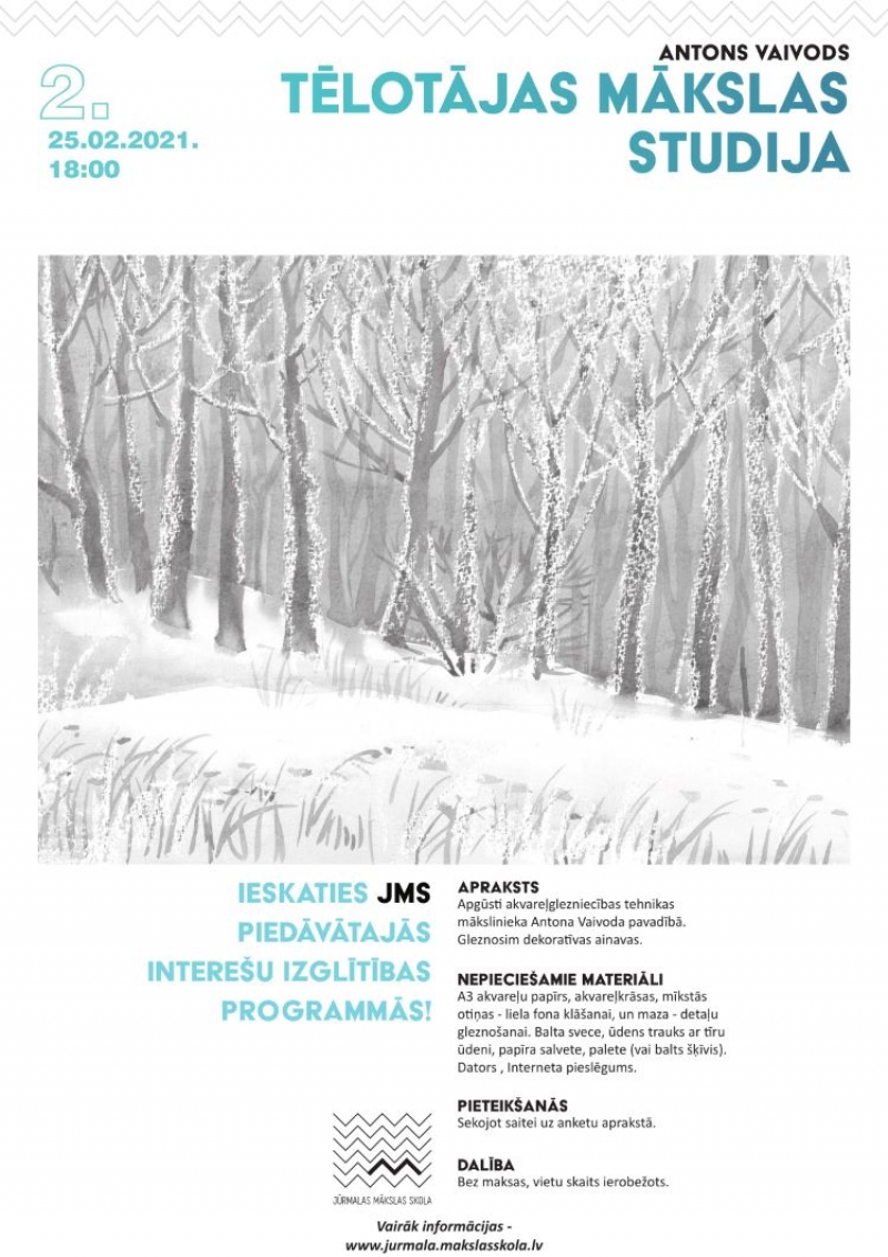 Jūrmalas Mākslas skola aicina uz Atklāto tiešsaistes nodarbību Interešu izglītības programmā “VIZUĀLĀS MĀKSLAS DARBNĪCA”.