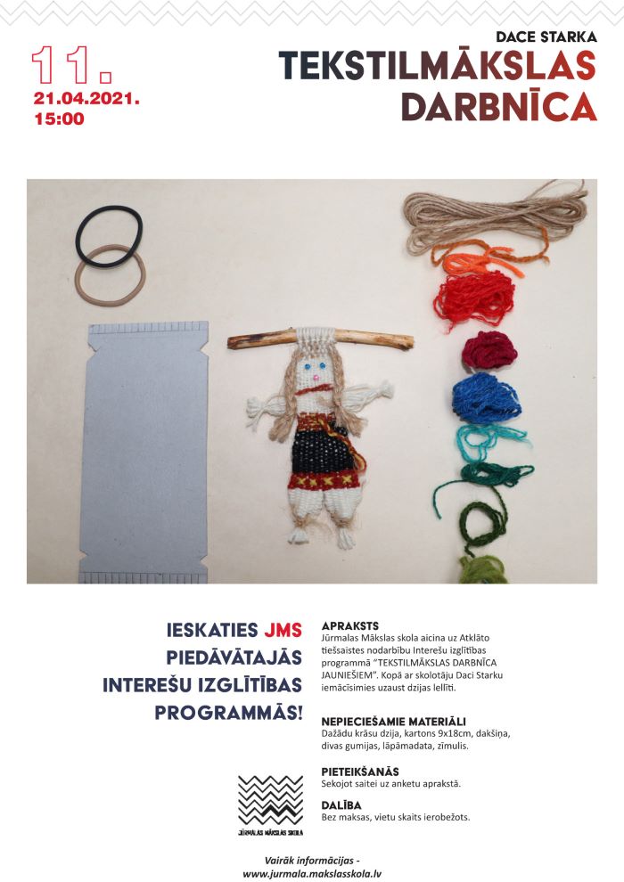 Aicinām piedalīties atklātajā tiešsaistes nodarbībā!  21. aprīlī 15.00 kopā ar skolotāju  Daci Starku iemācīsimies uzaust dzijas lellīti.