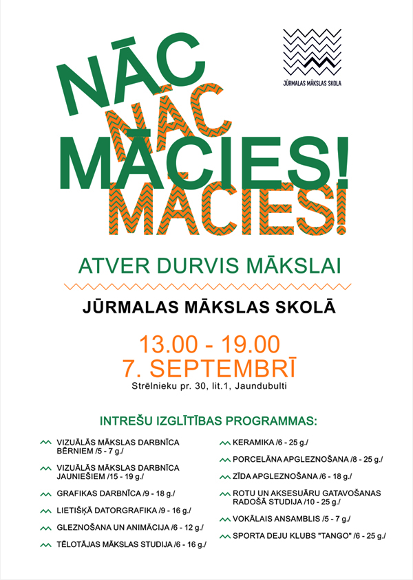 2016. gada 7. septembrī plkst. 13.00 - 19.00 Jūrmalas Mākslas skola aicina uz atvērto durvju dienu, iepazīstinot ar skolas interešu izglītības programmām.