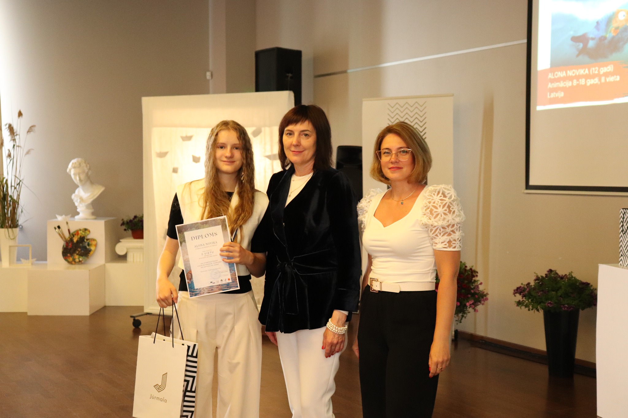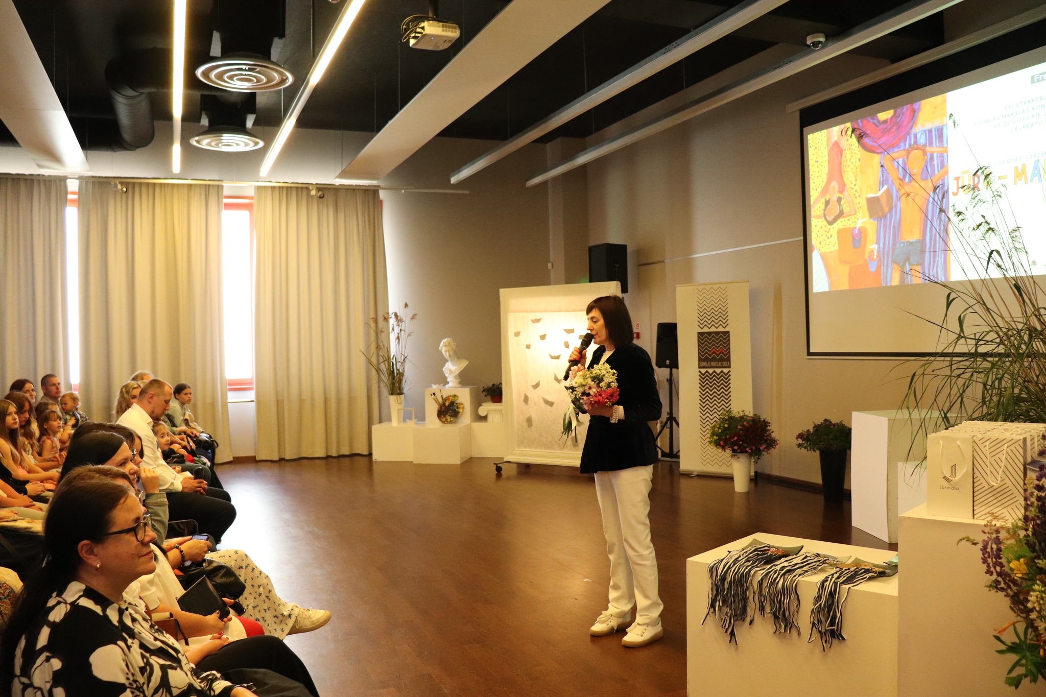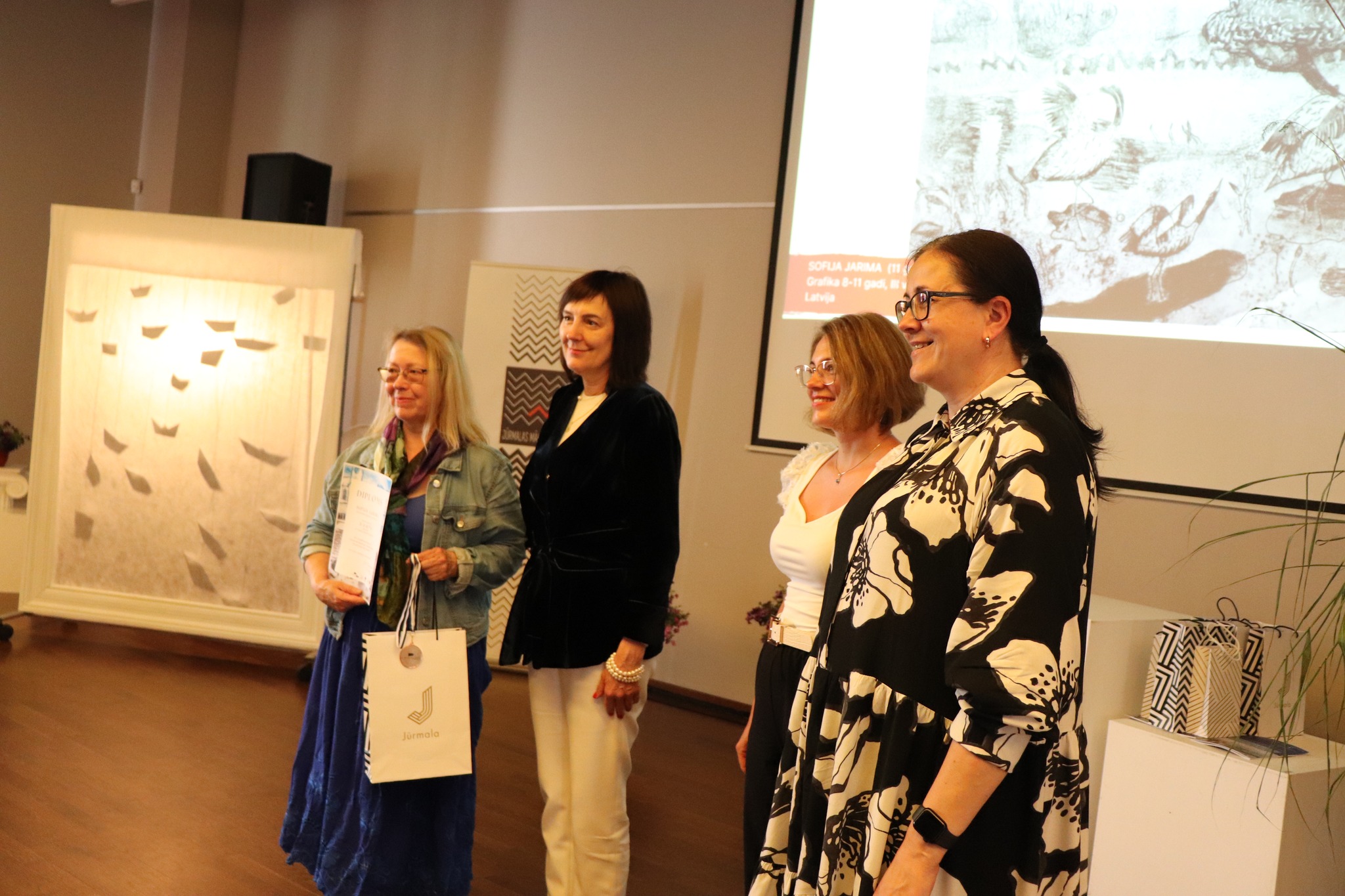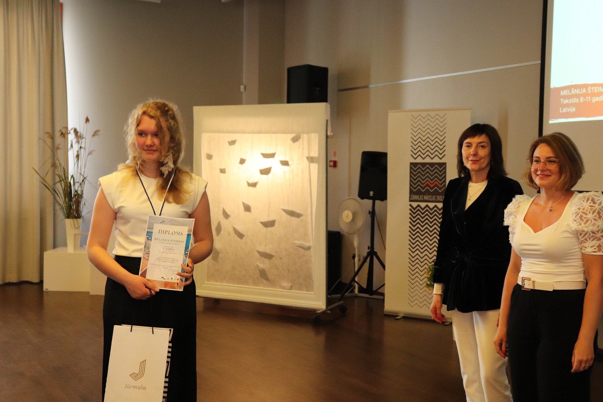 Laureātus sveica un balvas pasniedza Jūrmalas domes priekšsēdētāja Rita Sproģe, Latvijas Nacionālā kultūras centra tautas lietišķās mākslas eksperte Linda Rubena, konkursa žūrijas pārstāve, Tukuma Mākslas skolas direktores vietniece Kristīne Belte, Jūrmalas mākslas skolas projektu vadītāja Dace Starka. Dzīvu, atraktīvu muzikālo priekšnesumu sniedza vokālās studijas "Knīpas un knauķi" lieliskie dziedātāji savas vadītājas, vienlaikus Jūrmalas Mākslas skolas direktores Sanitas Sējānes vadībā. Mīļie konkursa dalībnieki, jaunie mākslinieki, sveicam ikvienu un lepojamies ar jums! Balvas vēl ceļos uz tālām zemēm, bet izstāde ir skatāma Jūrmalas Mākslas skolas izstāžu zālē Strēlnieku prospektā 30, K-2 līdz 20. augustam.