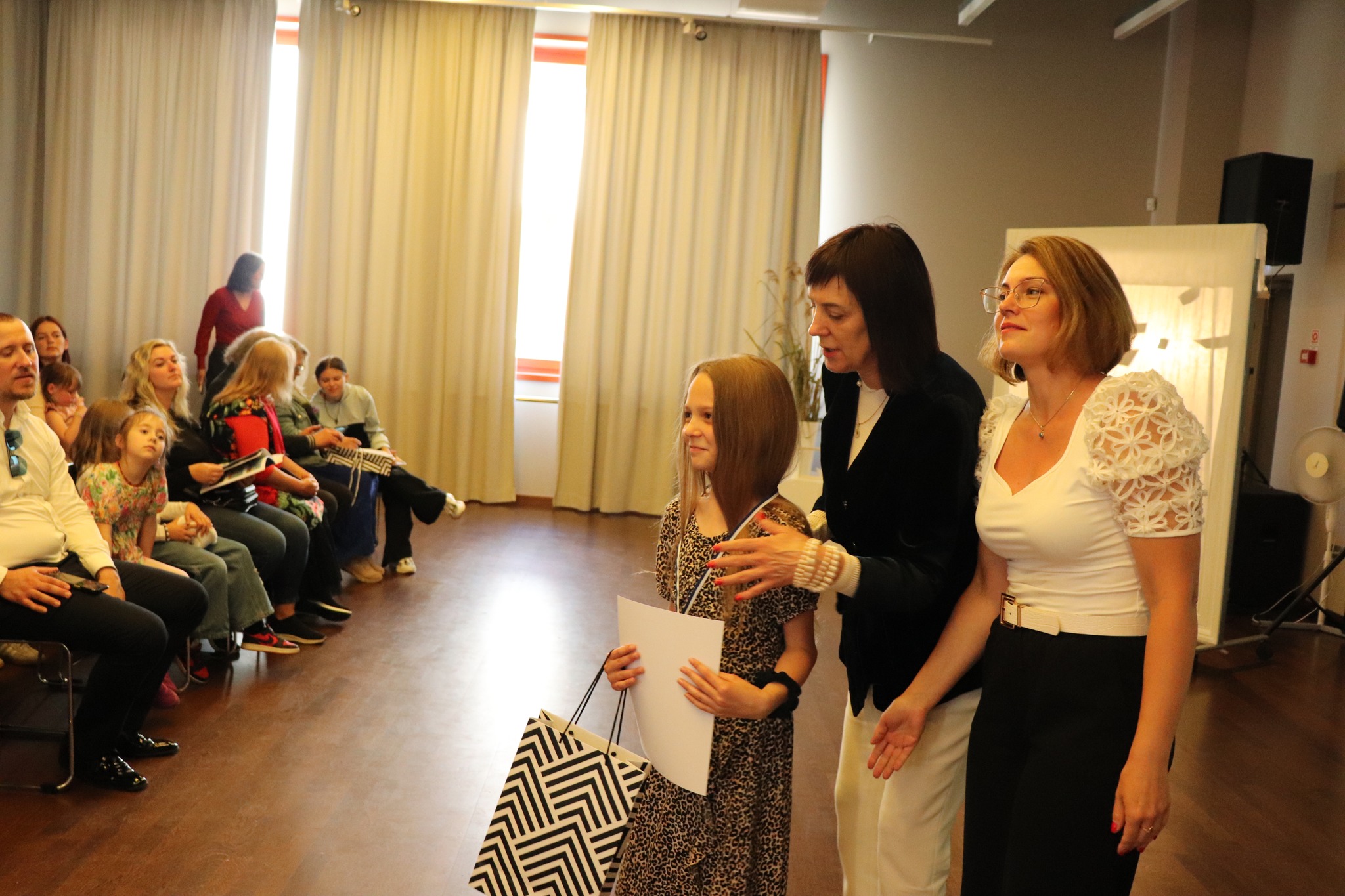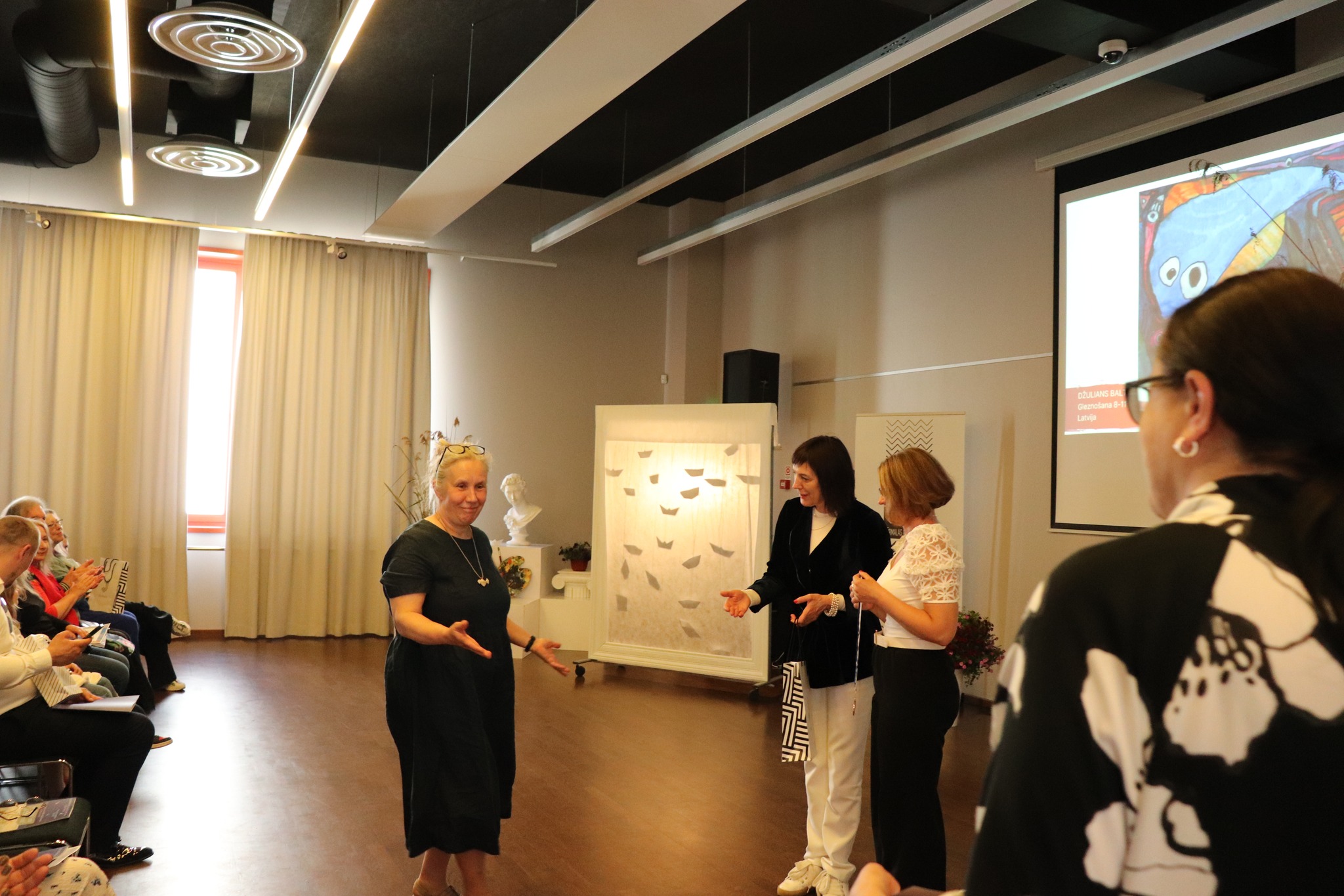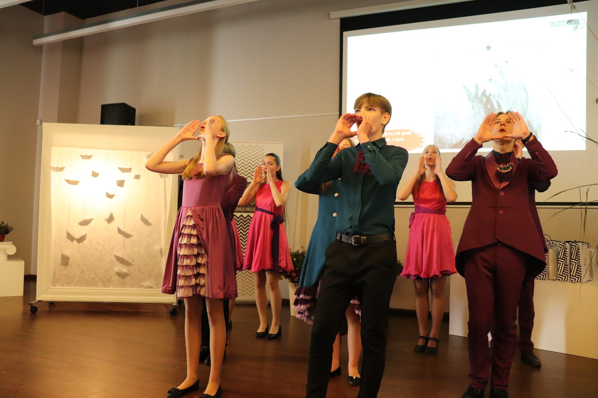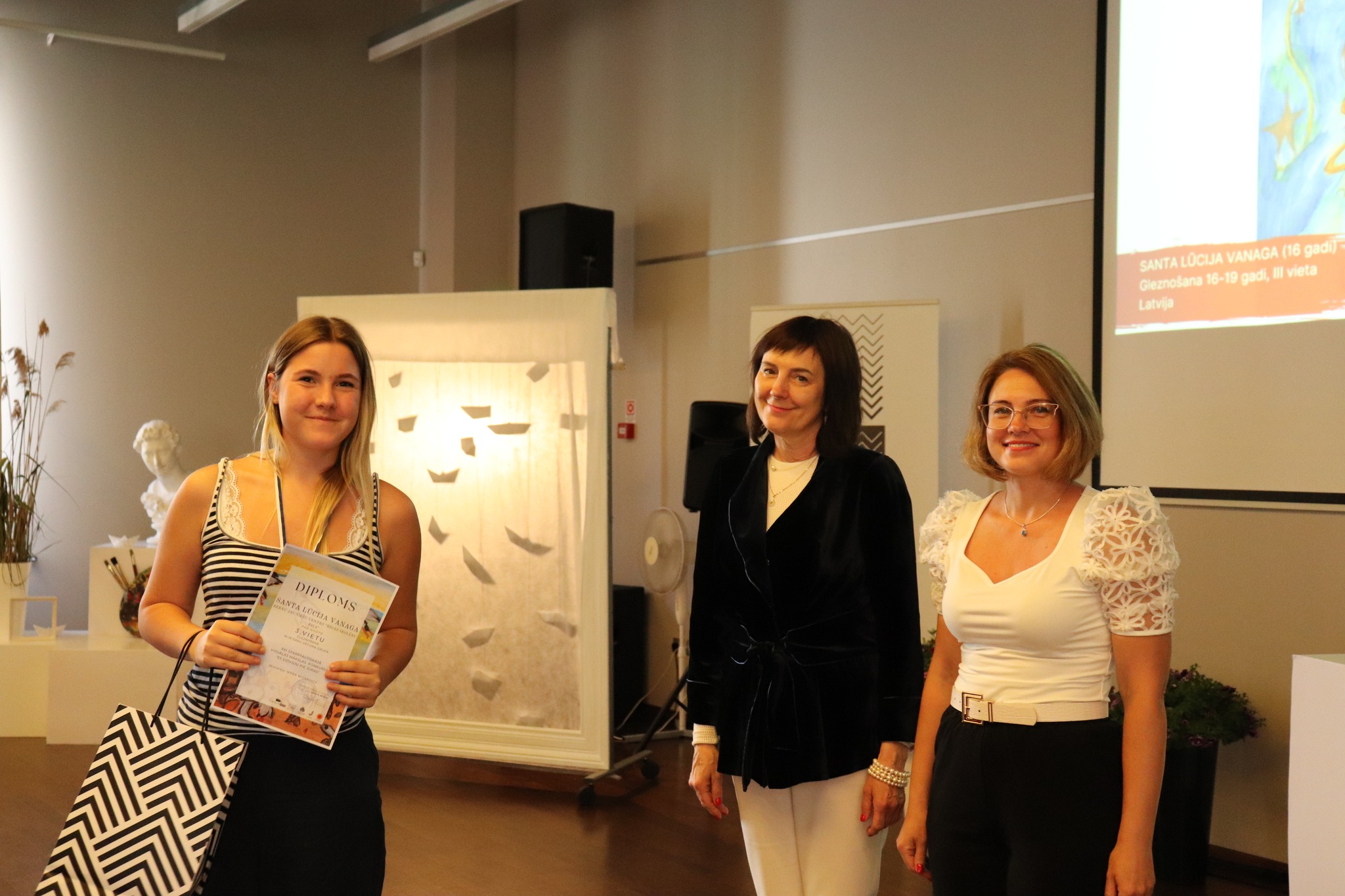 Laureātus sveica un balvas pasniedza Jūrmalas domes priekšsēdētāja Rita Sproģe, Latvijas Nacionālā kultūras centra tautas lietišķās mākslas eksperte Linda Rubena, konkursa žūrijas pārstāve, Tukuma Mākslas skolas direktores vietniece Kristīne Belte, Jūrmalas mākslas skolas projektu vadītāja Dace Starka. Dzīvu, atraktīvu muzikālo priekšnesumu sniedza vokālās studijas "Knīpas un knauķi" lieliskie dziedātāji savas vadītājas, vienlaikus Jūrmalas Mākslas skolas direktores Sanitas Sējānes vadībā. Mīļie konkursa dalībnieki, jaunie mākslinieki, sveicam ikvienu un lepojamies ar jums! Balvas vēl ceļos uz tālām zemēm, bet izstāde ir skatāma Jūrmalas Mākslas skolas izstāžu zālē Strēlnieku prospektā 30, K-2 līdz 20. augustam.